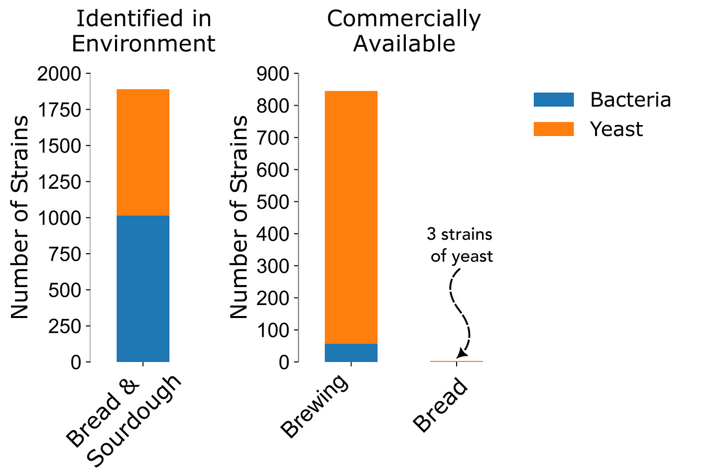 Since that time, many other strains of bacteria & yeast have been made available for beer manufacturing, allowing for a large variety of beer to be produced in a single facility. Breadmaking has yet to experience this boon of microbial innovation. Currently, bakers have two options, a sourdough starter at a small scale, or the same yeast isolated by Pasture in the 1800s used at a large scale.